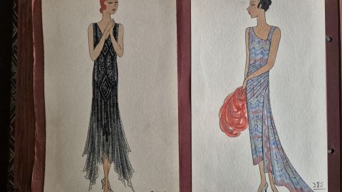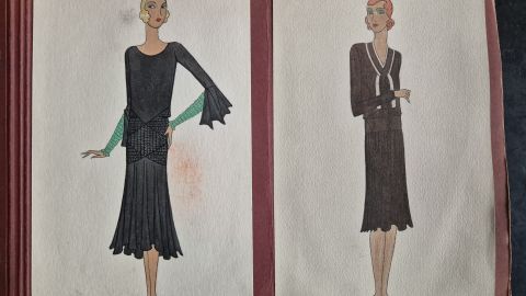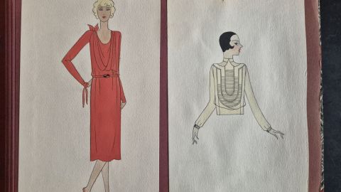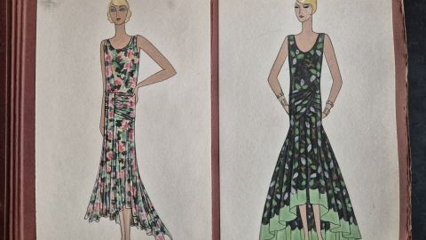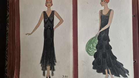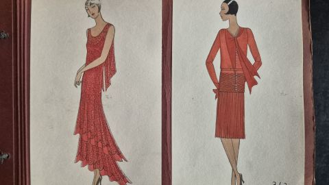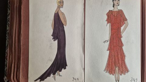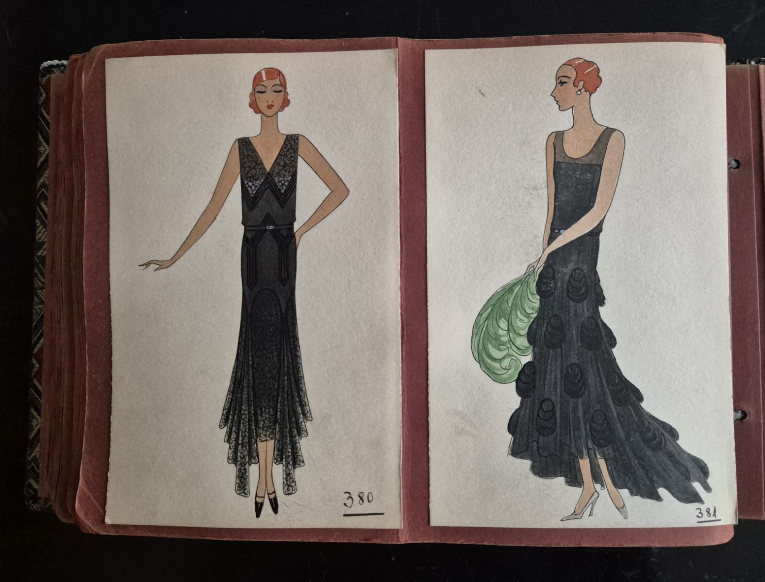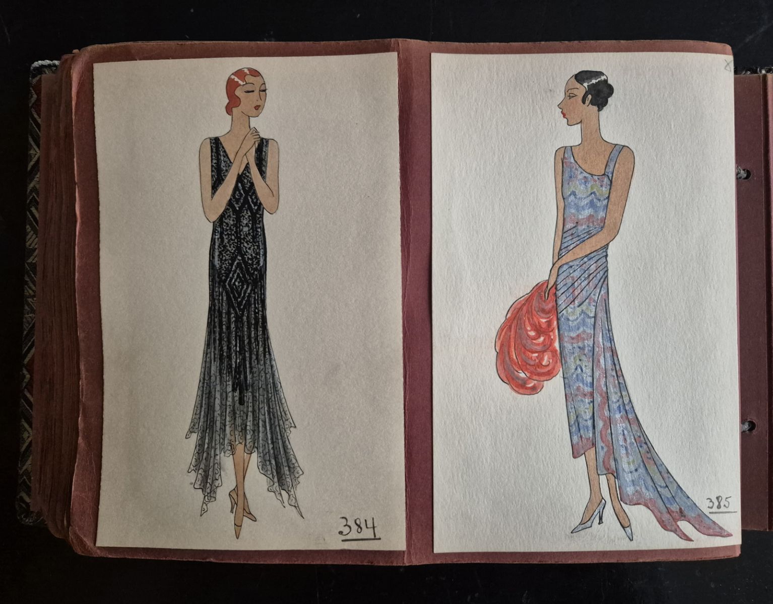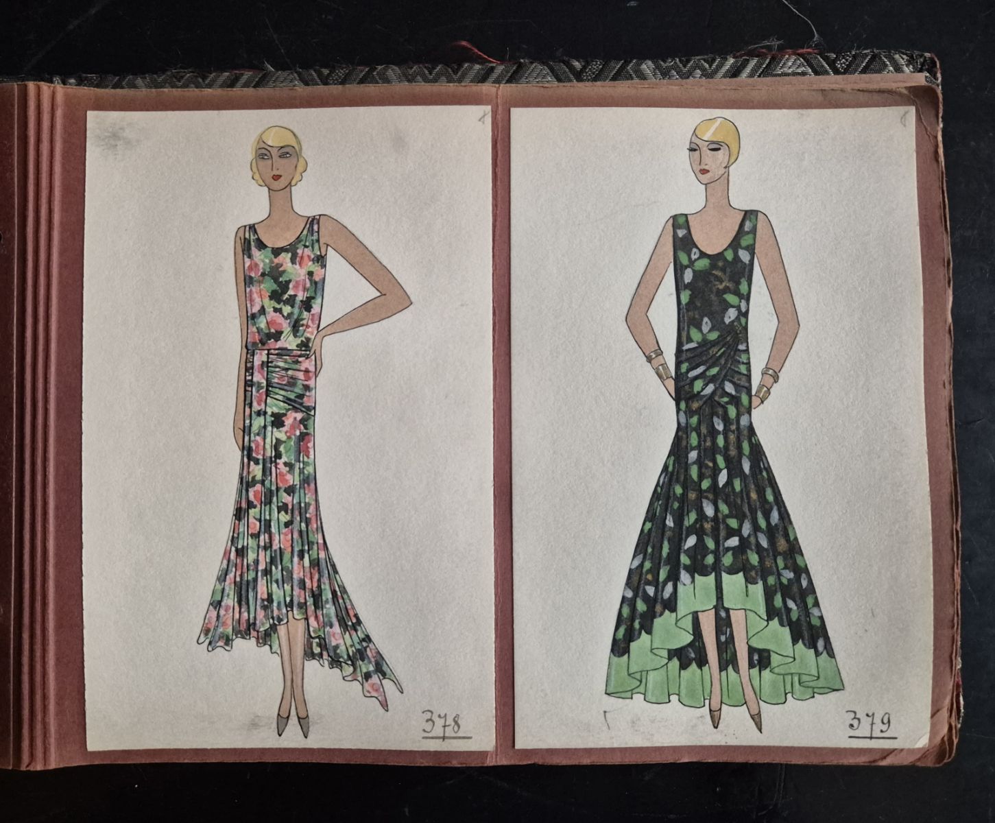 A collection of 93 original dress designs, numbered 310 to 403 (missing number 347). Presumably numbers 1 to 309 presented the previous seasons (Spring, Summer and Autumn 1929).