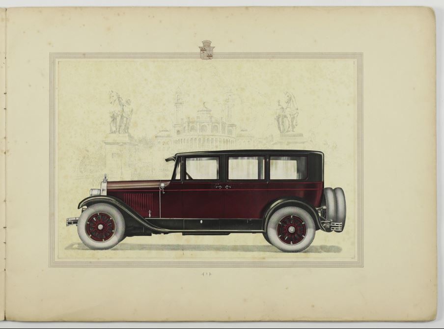 Printed wrappers with Cadillac emblems. Fourteen chromolithographic plates mounted on printed, numbered leaves with ornamental borders. Pages numbered one to thirty-one, with only the uneven numbers, starting at page five, bearing illustrations.