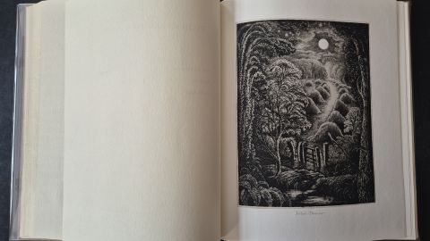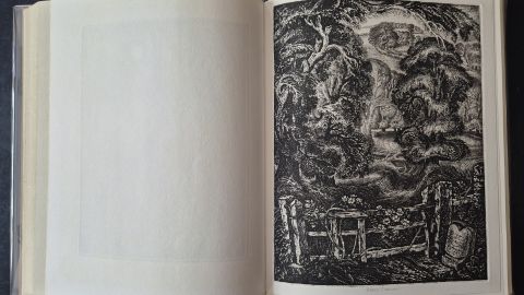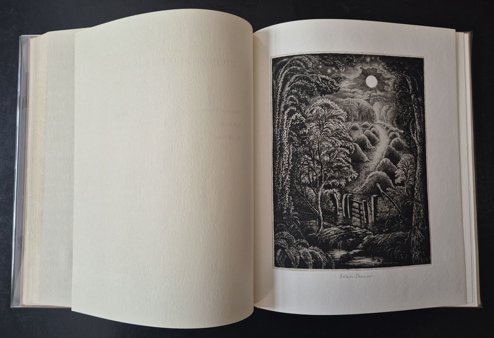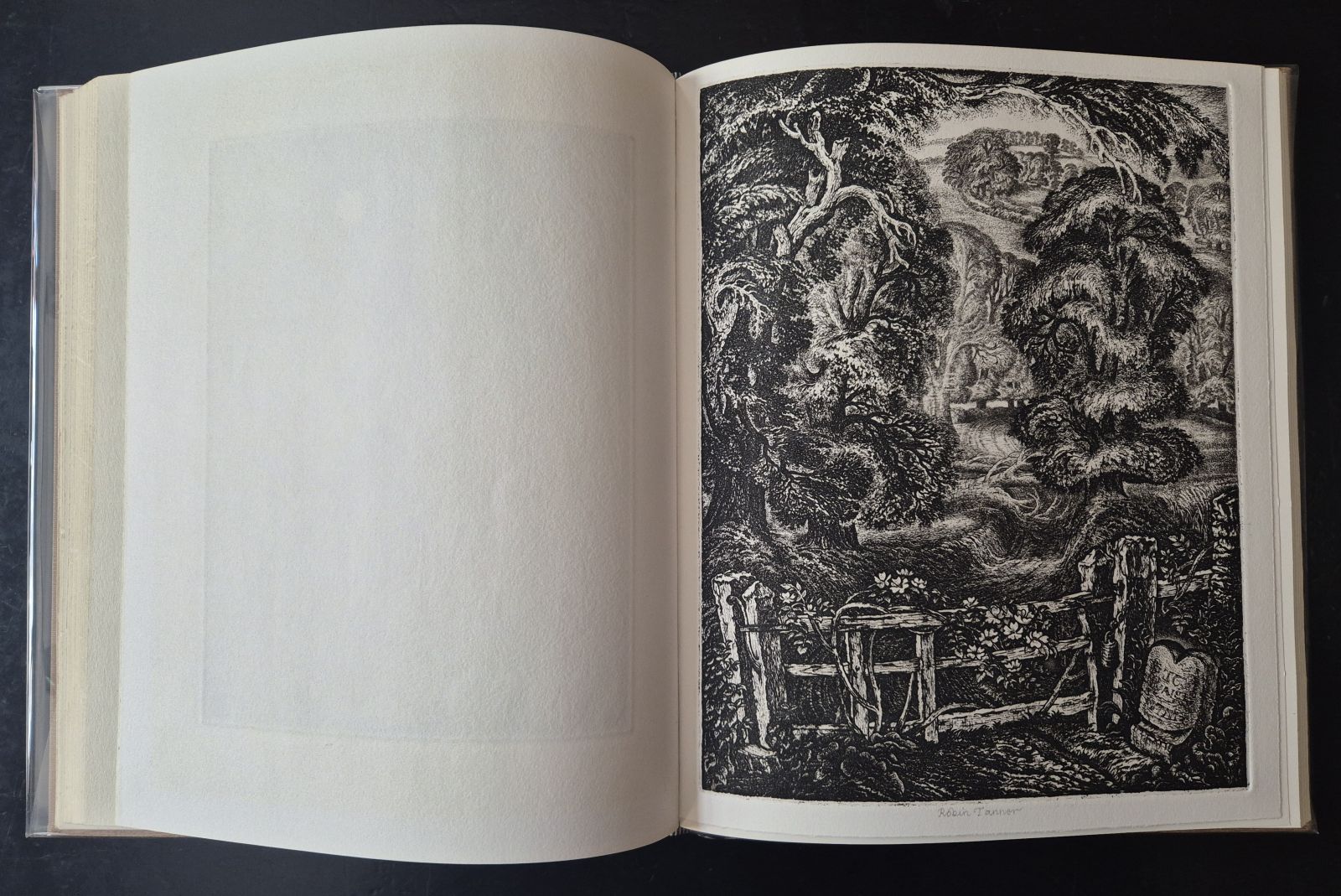 Limited edition with three original etchings by Neo-Romantic artist, Robin Tanner (1904–1988), signed in pencil ('Wren and Primroses' on the title page, 'Full Moon' on page 85 and 'Old Road' on page 87). 90 pages of text, 81 pages of black & white plates. Quarter bound in leather. 34 x 28cms.