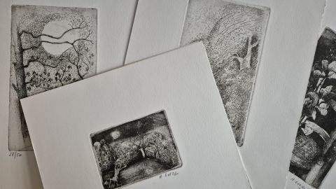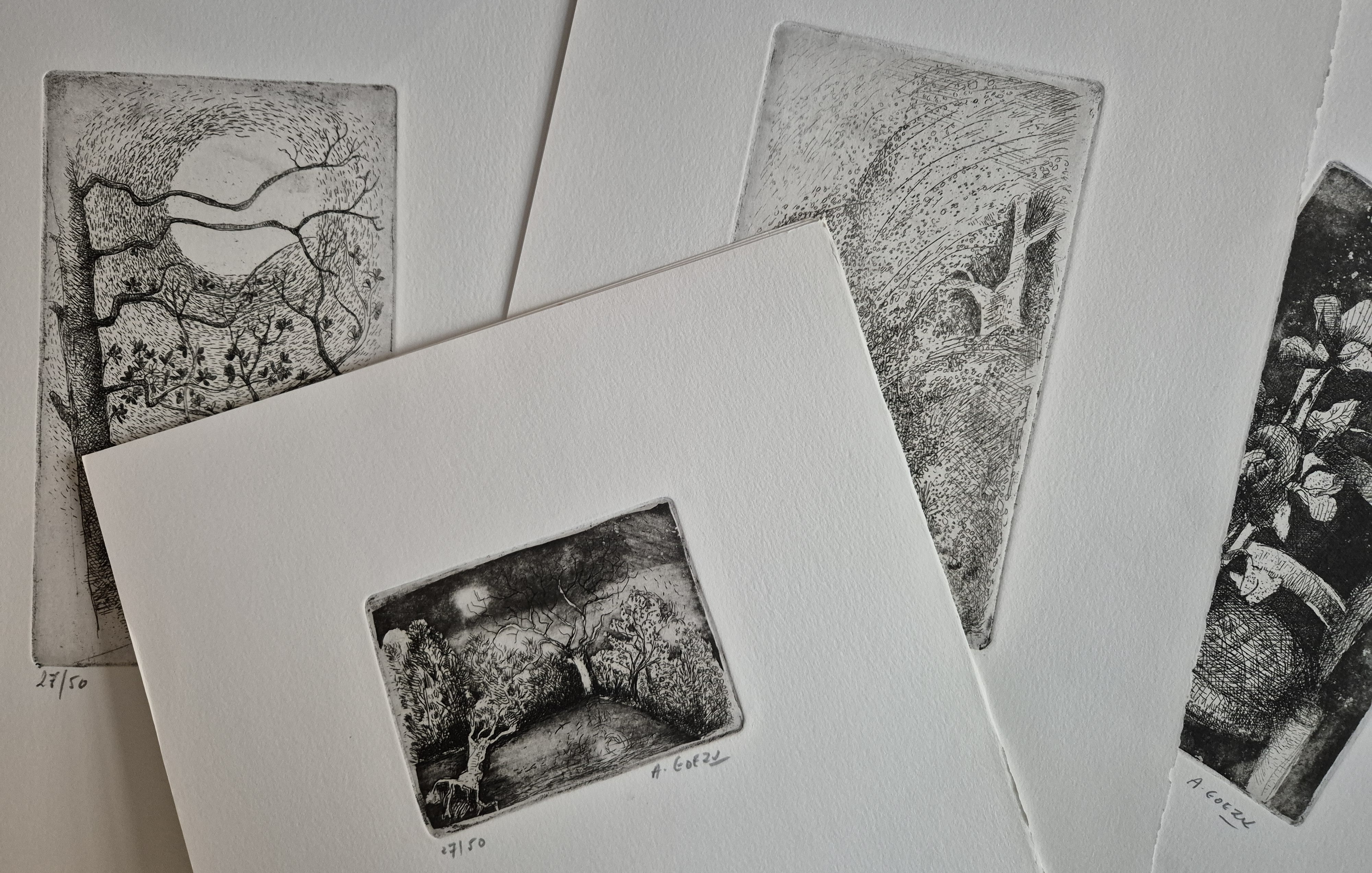 The copper etchings were printed on the artist's own hand press, each edition numbered 27/50 and signed. Goezu's rich, mysterious, dream world marries perfectly with Verbrugghen's poems.