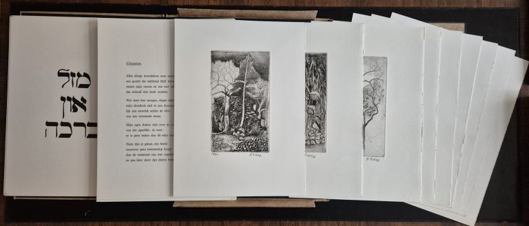 16 poems by Jo Verbrugghen (1931-) and 8 original copper etchings by Andre Goezu (1939-). Loose as issued in portfolio. 40x30.5cms. Text in Dutch.